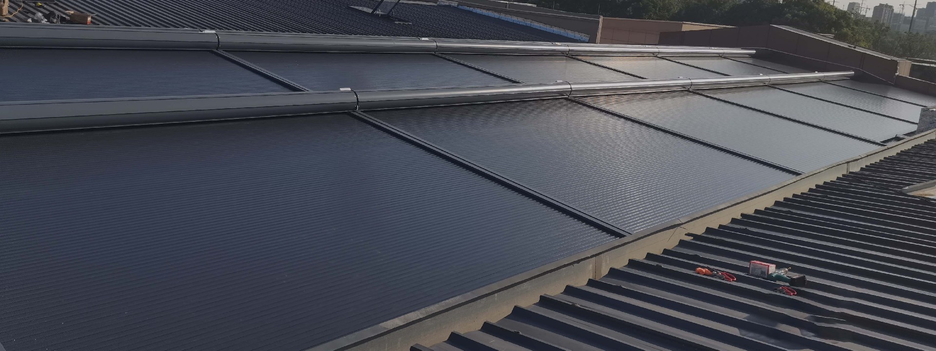 卷軸式方案,面料運行方向與原有結(jié)構(gòu)貼合度高,最大程度保持原有屋面結(jié)構(gòu)美觀